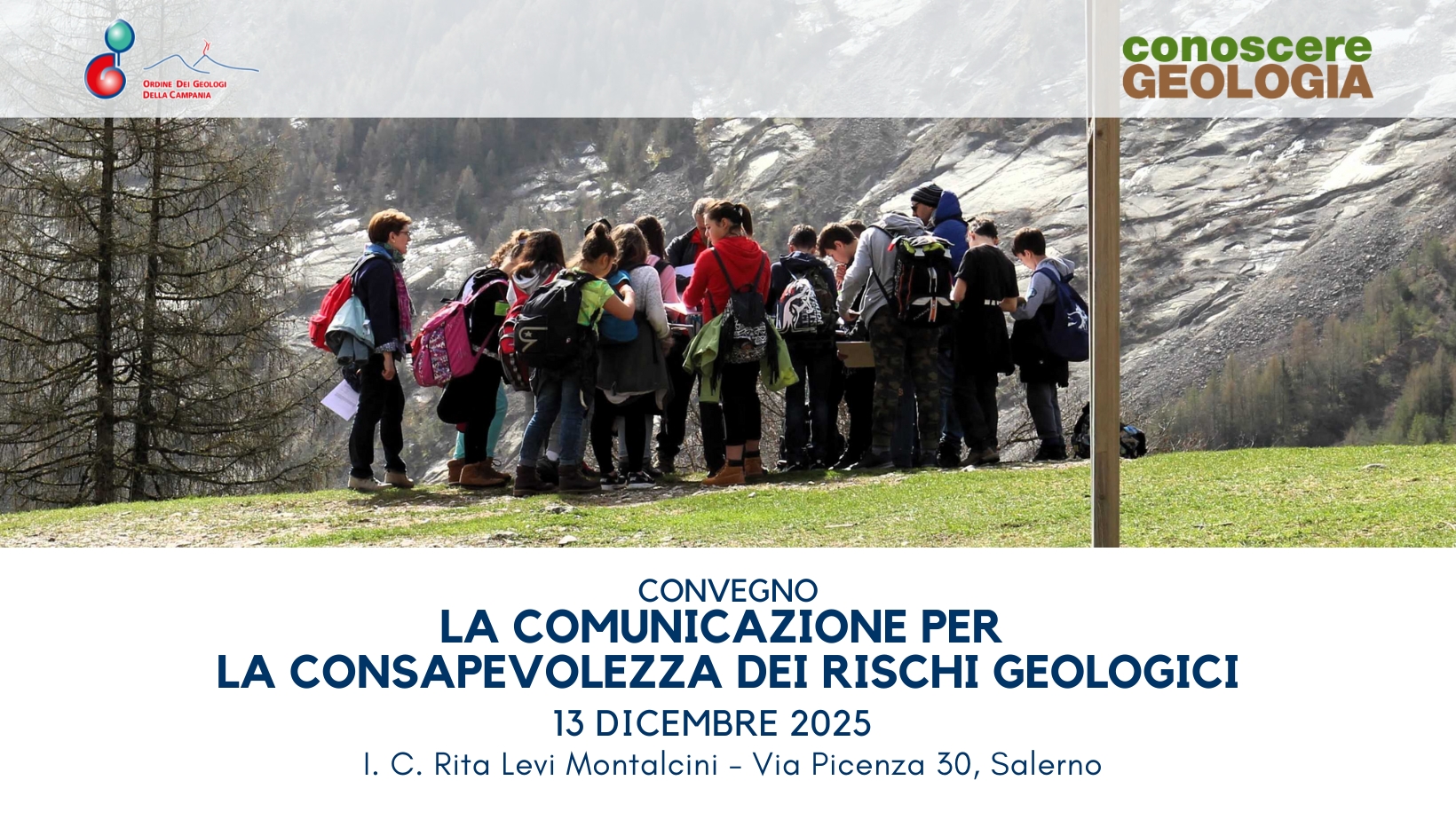L’Ordine dei Geologi della Campania è lieto di promuovere il convegno “La comunicazione per la consapevolezza dei rischi geologici”, un evento in collaborazione con la testata “Conoscere Geologia” fondamentale dedicato a professionisti, studenti, enti pubblici e aziende del settore. L’iniziativa si propone di approfondire le strategie comunicative efficaci per aumentare la consapevolezza sui rischi geologici, tema cruciale per la sicurezza del territorio e la prevenzione dei disastri naturali.