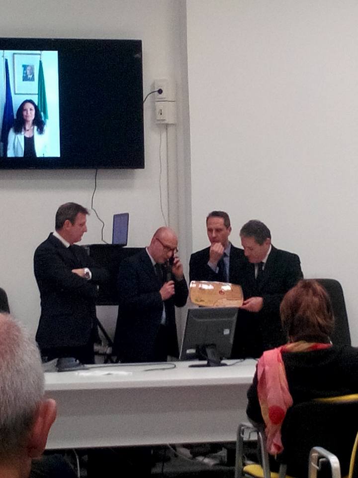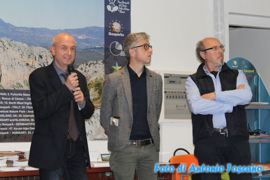 LA CERIMONIA DI PREMIAZIONE HA AVUTO INIZIO CON LA TELEFONATA DELL’AMBASCIATORE DOTT.SSA VINCENZA LOMONACO, RAPPRESENTANTE PERMANENTE ITALIANO ALL’UNESCO. SEGUITA DAI SALUTI DEL NEO ELETTO PRESIDENTE DEL CONSIGLIO NAZIONALE DEI GEOLOGI FRANCESCO PEDUTO E GLI INTERVENTI DEL DIRETTORE DELL’ENTE PARCO ANGELO DE VITA, DEI RAPPRESENTANTI DELLA S.G.I., DELL’ISPRA, DEL SINGEOP NAZIONALE E DEL COORDINATORE NAZIONALE DEI GEOPARCHI ANIELLO ALOIA. NEL CORSO DELLA CERIMONIA SIMPATICO INTERVENTO DEL CABARETTISTA LIMO BARBIERI E A CONCLUSIONE IL BRINDISI IN ONORE DEL PRESIDENTE NAZIONALE FRANCESCO PEDUTO.