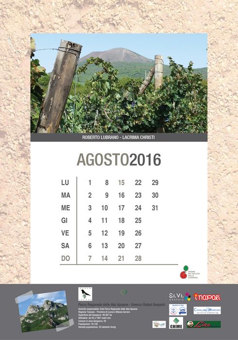 LA SECONDA EDIZIONE HA DEDICATO AI 10 GEOPARCHI ITALIANI RICONOSCIUTI PATRIMONIO DELL’UNESCO, LA COPERTINA DEL CALENDARIO 2016 “NUTRITERRA” L’INFLUENZA DELLA GEOLOGIA NELLE PRODUZIONI ALIMENTARI, TEMA DEL CONCORSO VOLUTO IN OCCASIONE DELL’EXPO 2015.